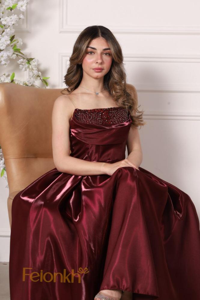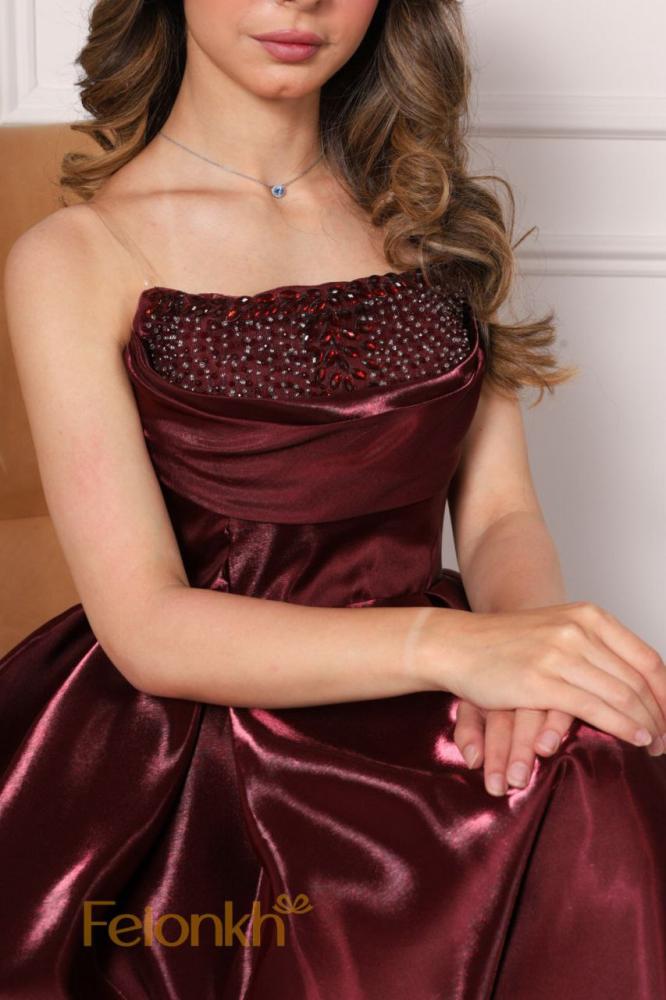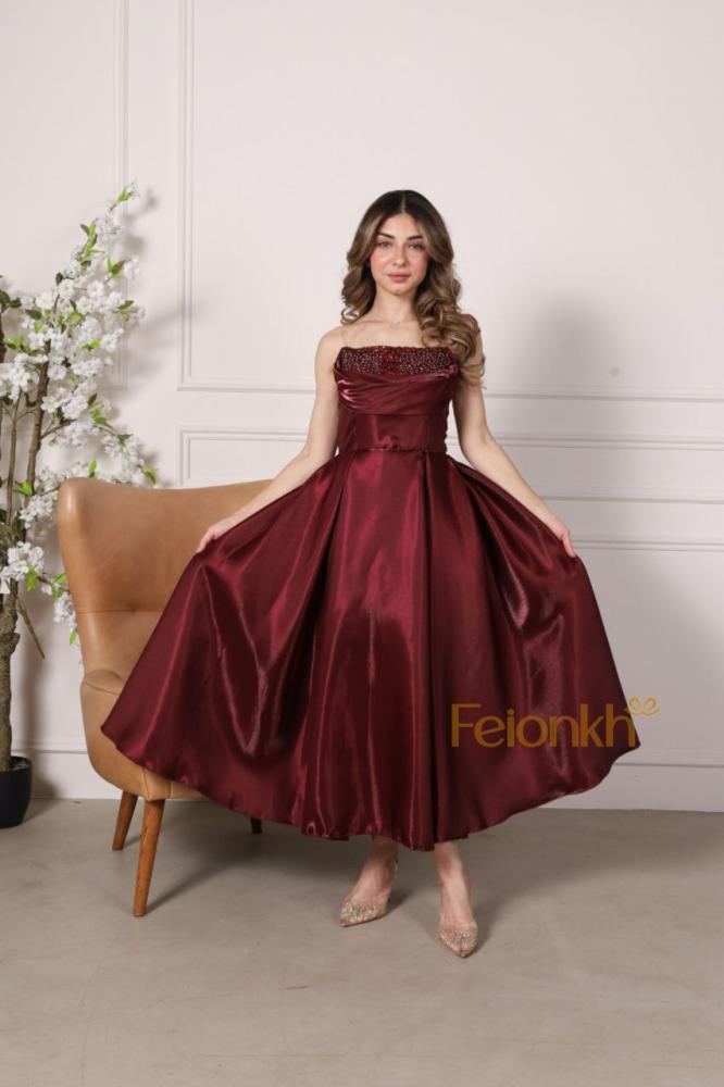 فستان: برغندي ارجنز ناعم لمعه ميد